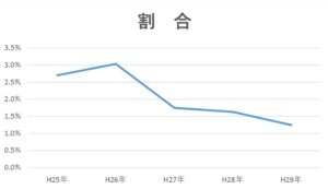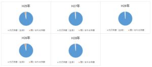 医療文書の問い合わせがあった場合、その問い合わせ内容と対応内容を書類作成一覧に入力するようにしています。それを使用して、年間で(対象:平成25年~平成29年)どれぐらいの問い合わせがあるのかを調べてみました。